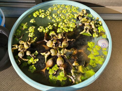 数日続いた寒波の影響で、飼育ケースの水はすっかり凍ってしまいました。 1月9日の朝。 メダカ鉢もカッチカチです。 これまでなんとか枯れずにきたホテイアオイとアマゾンフロッグピットも、 さすがにこの寒さでは枯れると思います。 熱帯性の水草なのでこれ…
